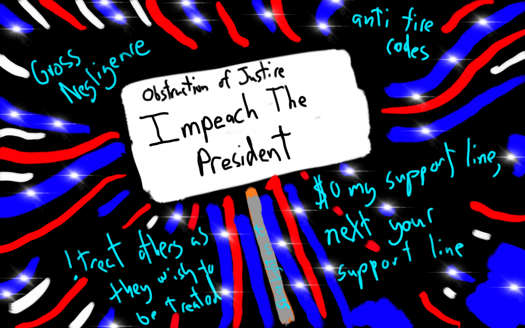 The impeached official was found guilty of gross abuses of power. Not enough hope has an issue with hurting its support lines so people can’t contribute to society. Kind of a double fuck you. locate the right kind of sword. Always trust The Church. The Church has our best interest at heart. Even when the Church parties in limos while we remain at $0. Never question power and corruption. That would be wrong. Learn to question authority and a broken system. Under the rule of President Biden and VP Kamala Harris, my SSI was set to $0. First Jason Lee Davis then others.