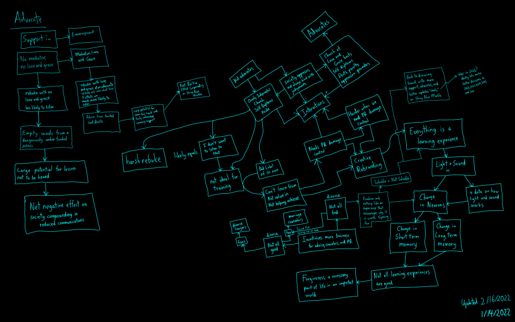 On the flip side, a mediator with love and grace, a rebuke with love and grace of an advocate, relatable and cares about how it effects me is much more likely to be listened to. Advice from a trust confidante has a larger potential for a lesson being heard and truly understood and thus increasing support. Net positive effect compounding on Shiny Blue Marble.