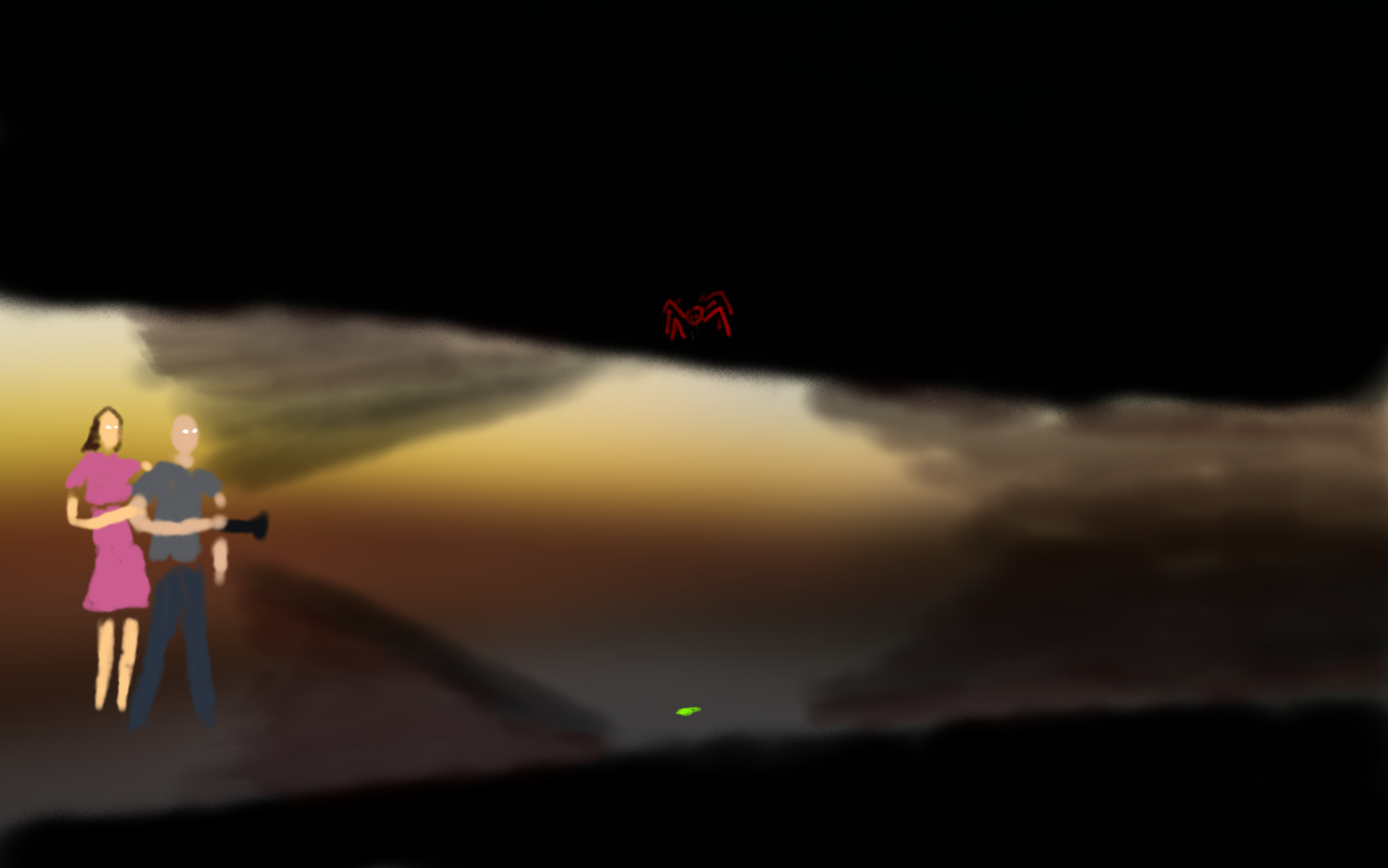 Blood and the lens flares, bullet holes in window is what makes this painting interesting, Corruption is Seductive