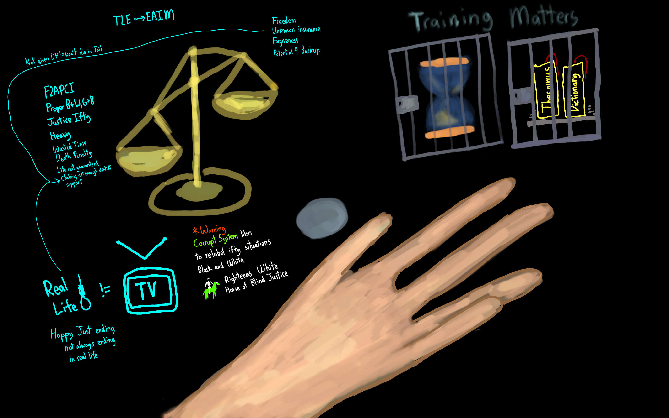 Warming the hearts of those that coil and manifest the corrupt chains of oppression before they turn cold might require a bit of strategizing, a bit of time thought and reflection. Punishing the manifestation of Injustice and Corruption without failing to acknowledge the problems a cold uncaring world amplifies by default is a worthy pursuit, a difficult pursuit.