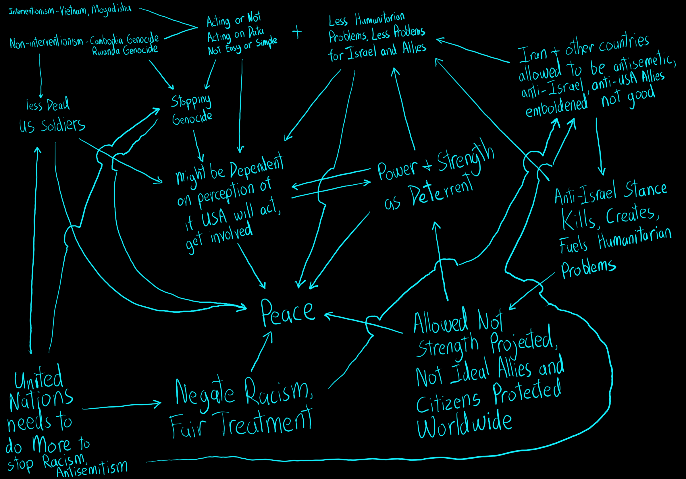 I am a USA Citizen. I am not affiliated with the government and I am also not an expert in History, US Foreign Policy, or International Relations. That said I am sharing my thoughts diagram. I might be missing something critical yet I feel like sharing beats saying nothing.