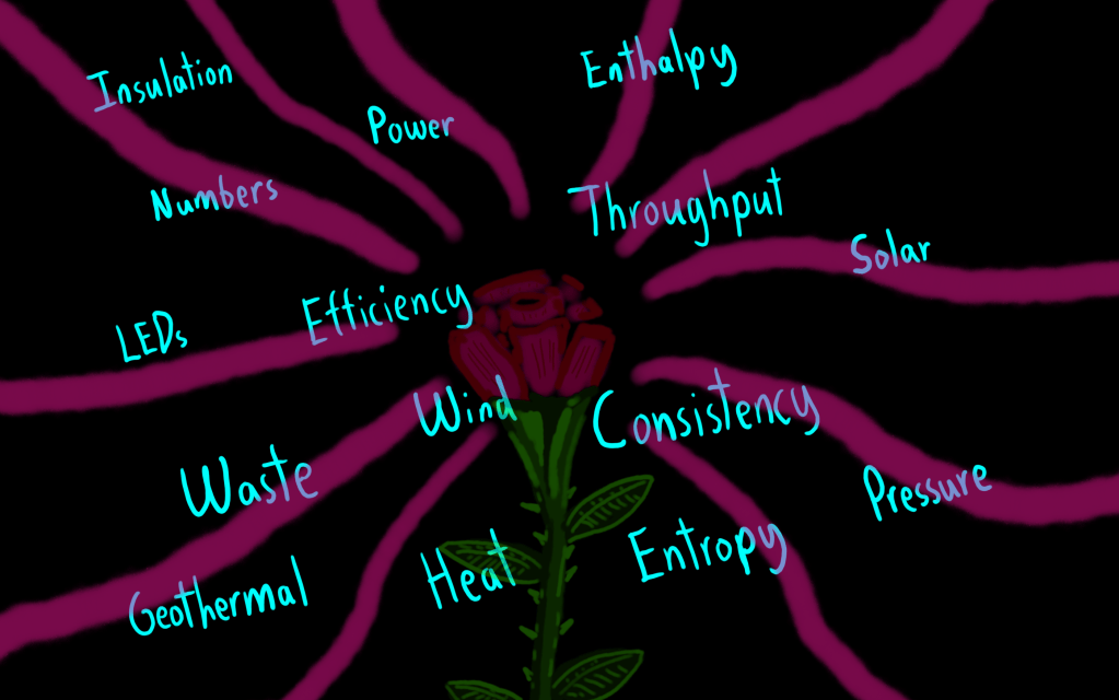 In the spirit of a better environment, a flower drawing I created a while back inclusive of energy efficiency and other concepts