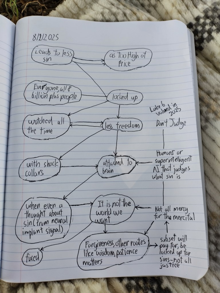 Diagrams, August 3rd, 2025 Posted byAugust 3, 2025December 8, 2025Posted inArt, Christianity Thoughts, Communication, Diagram, Problem Solving, World Sharing We don’t invest in a world of ideal reduced sin, collective investment in fixed is less than ideal, forgiveness and not enslaved by the past is valuable is worthy of turning up Share this: Share on Facebook (Opens in new window) Facebook Share on X (Opens in new window) X Like Loading... Related