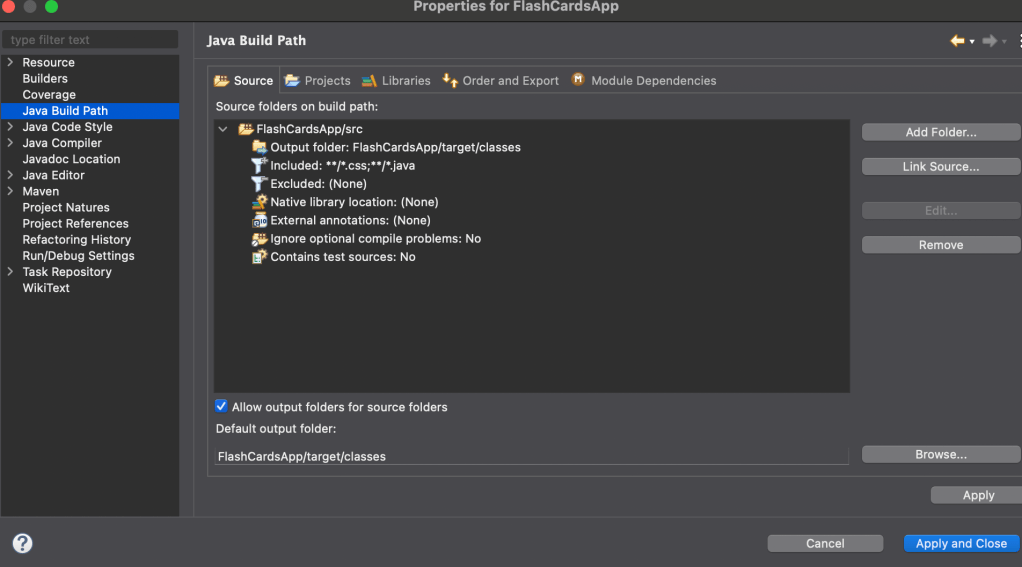 Further the CSS file wasn’t loading using getClass().getResource(“style.css”) – it was giving null which is not a problem I had on Windows. It seems to be how eclipse imported the project – there is a part of the configuration that allows which files are include format **/*.java. I added **/*.css and it worked.