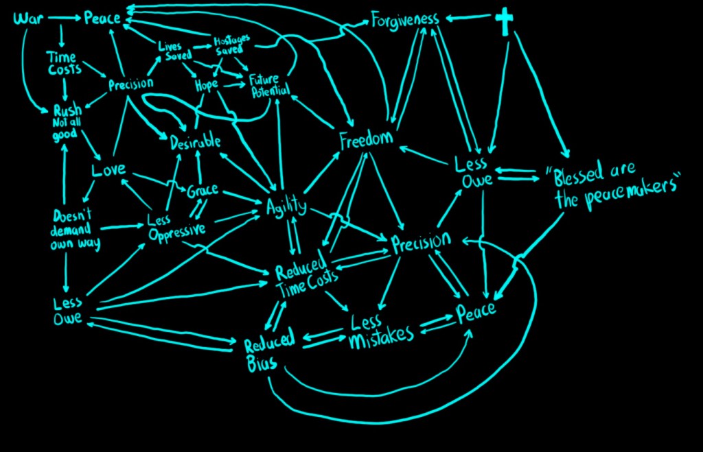 When I say Free Starter Diagram I mean it is a starting point, useful for people, potentially people with greater knowledge and experience than self to turn into something greater. Really meant for anyone, anyone that wants to add value to it or not, who might want to store it for a reference document. Churches around the World could likely compound upon this greatly. I am Christian, this is available to anyone Christian or not. Love doesn’t demand its own way is Christian concept.