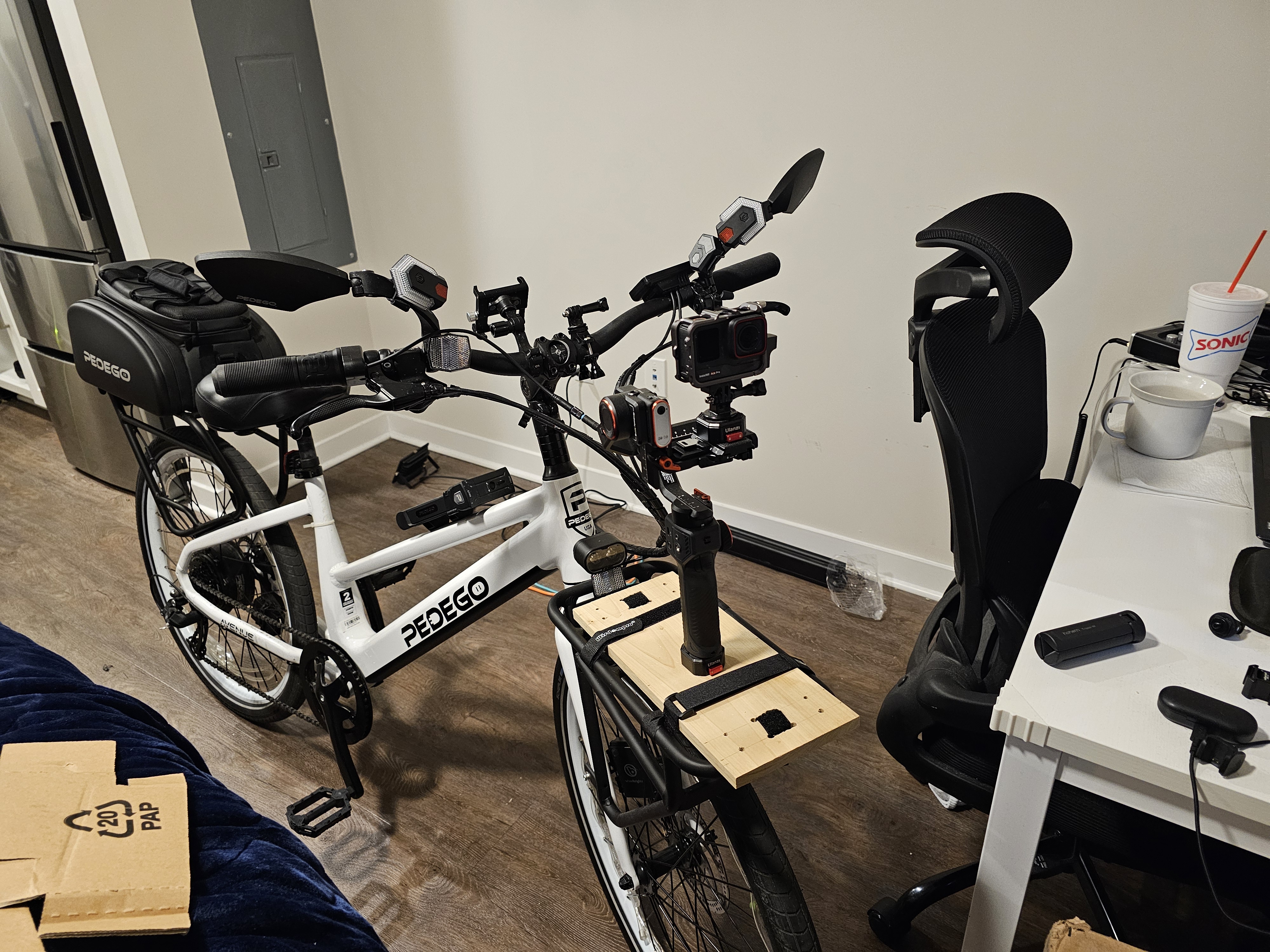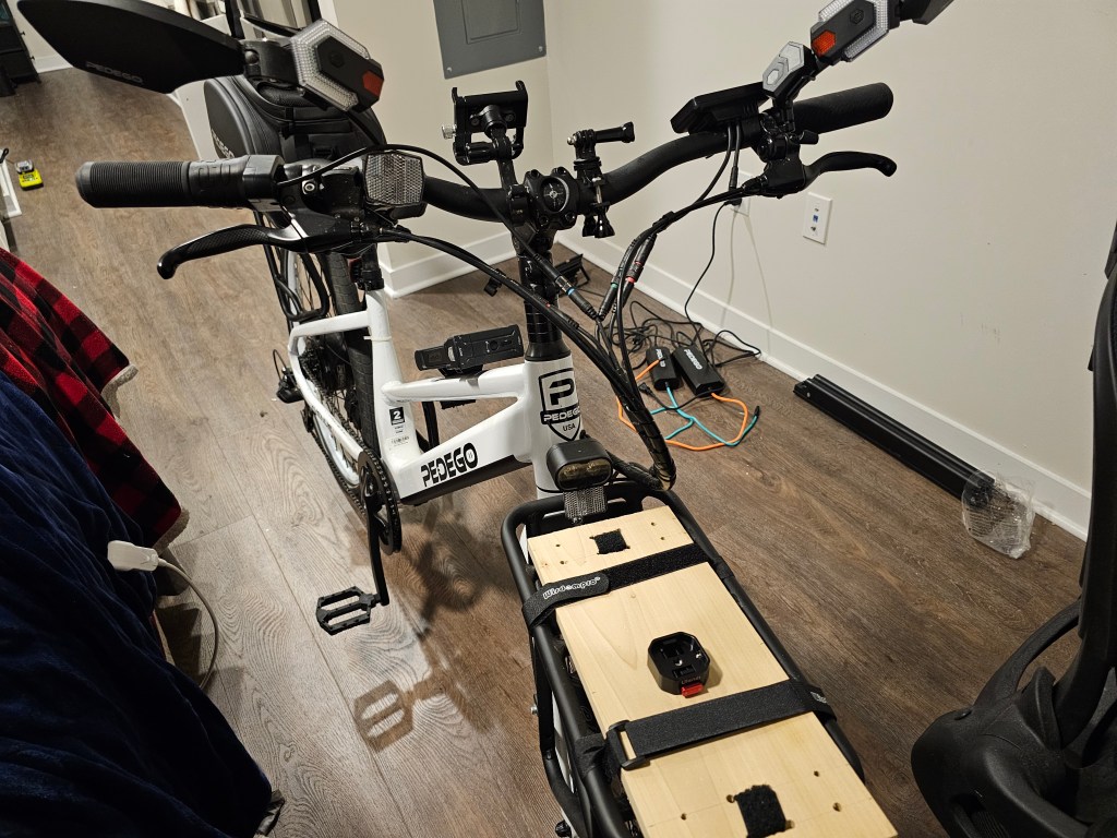 Bought a board from Home Depot, planning on adding one of the Ulanzi camera claws (lock unlock mechanism, available on Amazon) on the surface so can mount gimbal. Think the board will give a stable place for gimbal on front of e-bike. The Ulanzi camera claws a pretty slick, stable and fast lock unlocking unlocking – might be useful for other things like a table you want to be able to assemble and disassemble quickly. Also bought some ¼ inch screws, nuts, and washers that are same size as the camera screws (they look a bit different than those that come with camera products but seem to work ok with the gear I have, threading might be slightly different).