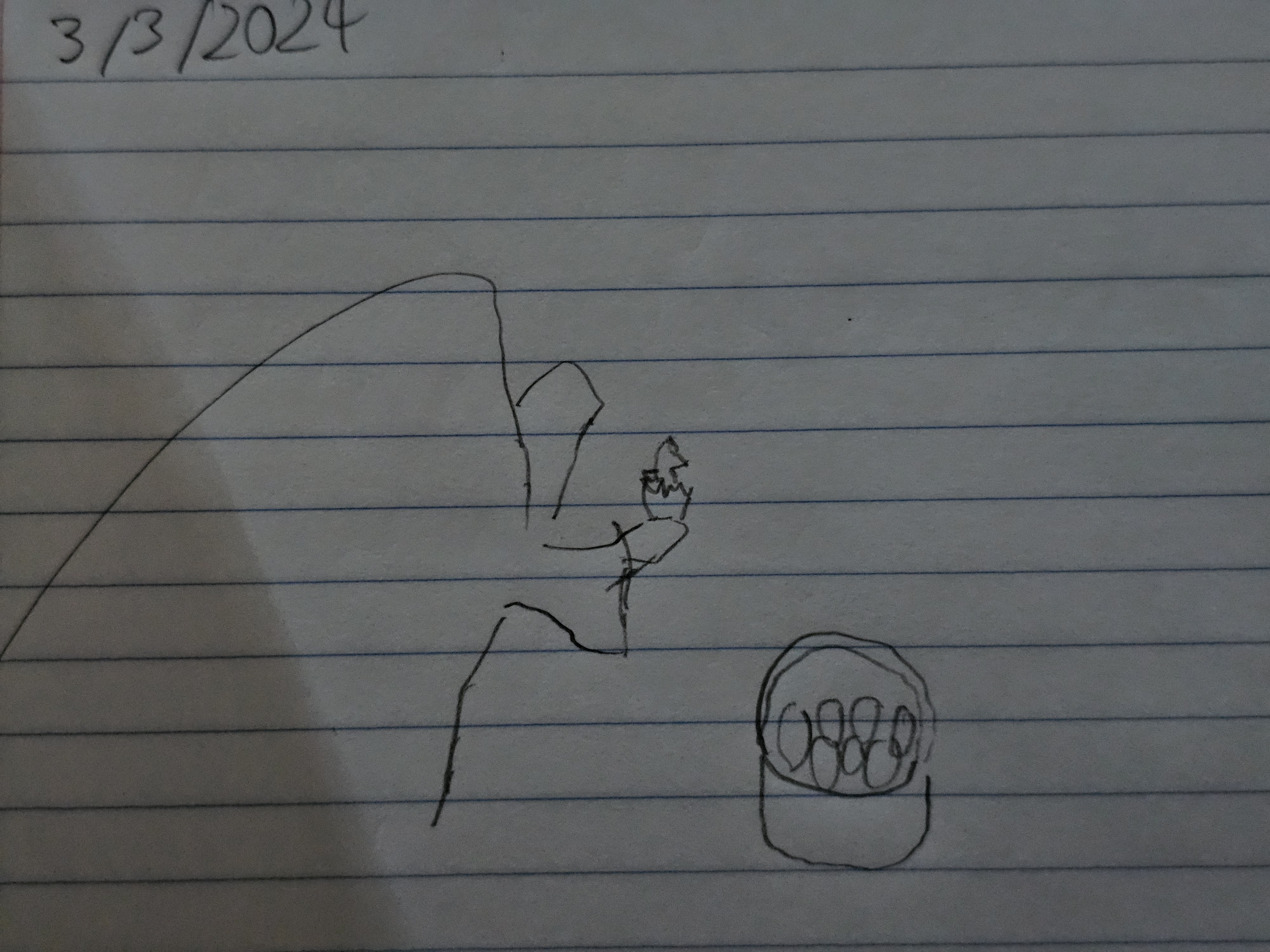 Rough concept, Angel and Chick next to easter basket in sculpture form, Feathers holding feathers
