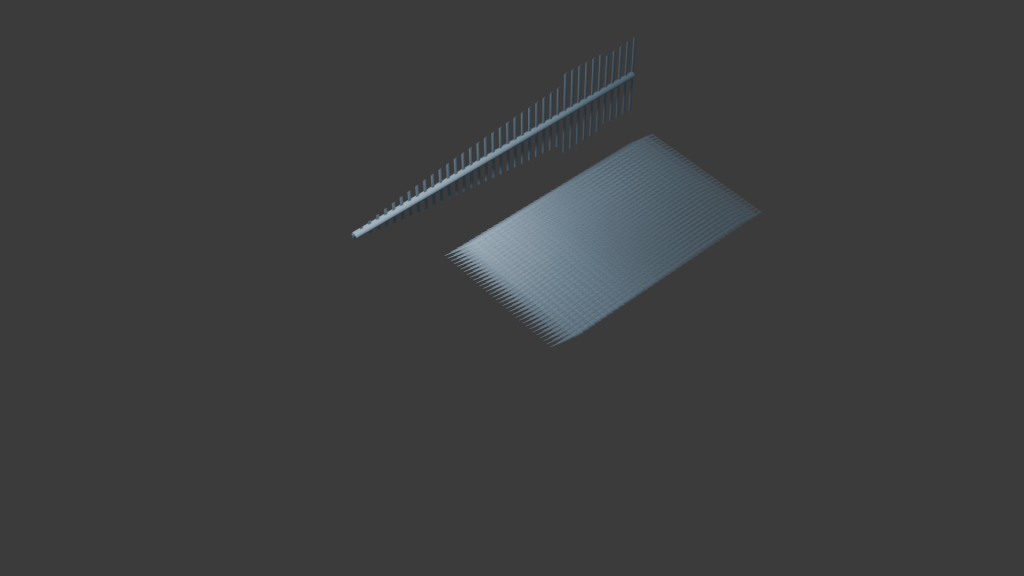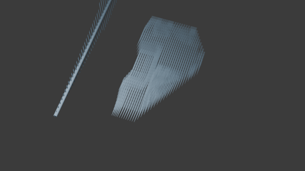 Added start to Angel Feather on Blender 3D project, likely need to add a range from where hairs of feather get bigger and then smaller