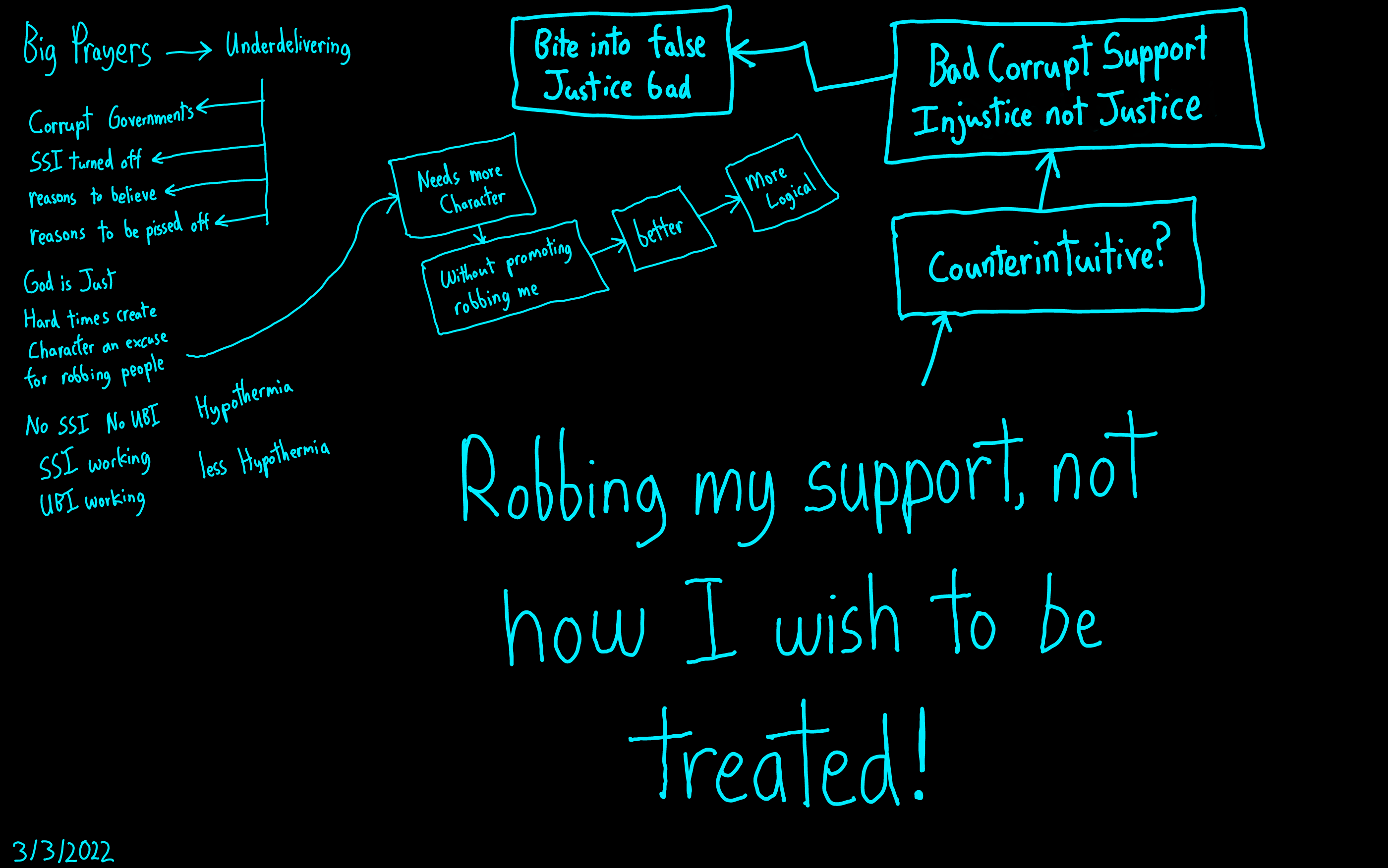 Robbed election -> UBI, Working SSI, More Justice, Epiphany that fucking with me and my family not in anyone’s best interest