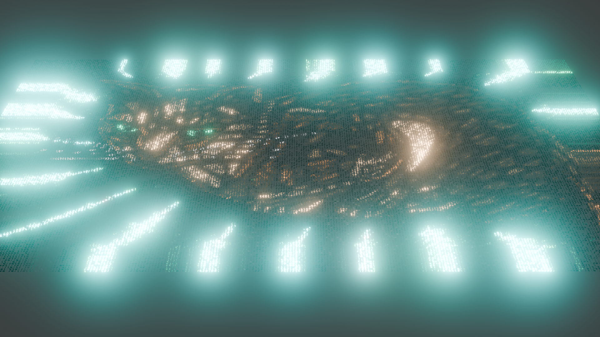 The mesh while seeing through shows the face yet the face looks different younger, possibly looking from a different direction. It is like it confuses the brain on what is in front and what is in back – not sure if parallax is the right word for it. Might not be visible to all – it is like the brain gets tricked while watching – might not happen to all people.